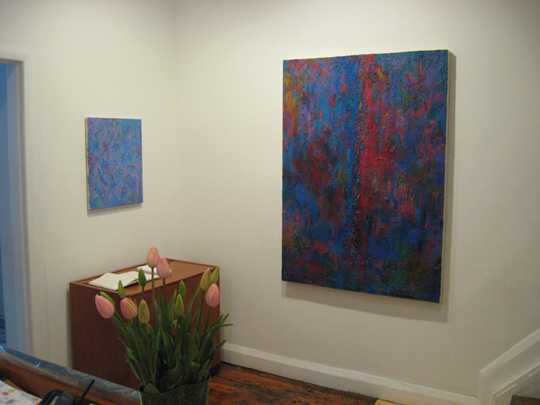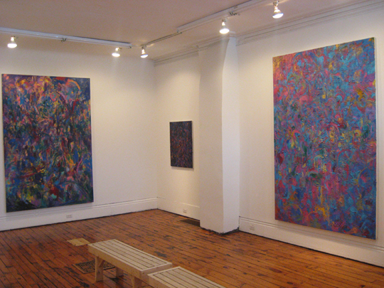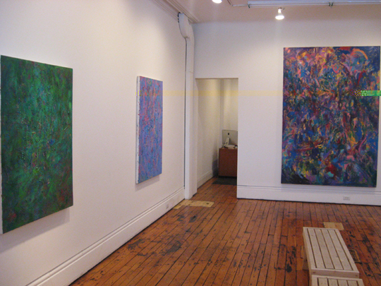 "While remaining involved in the present-ness of painting, these new works are devoid of any preconceived intentions or ideas meant to be fulfilled by the end of the painting process. Instead, the paintings are culminations of time spent in the studio making choices and formal decisions - more blue here, more violet there - with no set plan as to how or when they will finish. As objects they can be described as abstract, a play between the physical and the ethereal, the tangible and the mysterious."