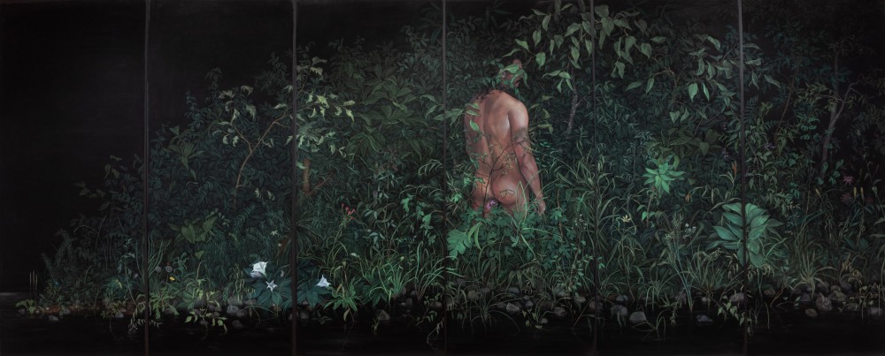 unfixed chalk pastel on black paper, six panels