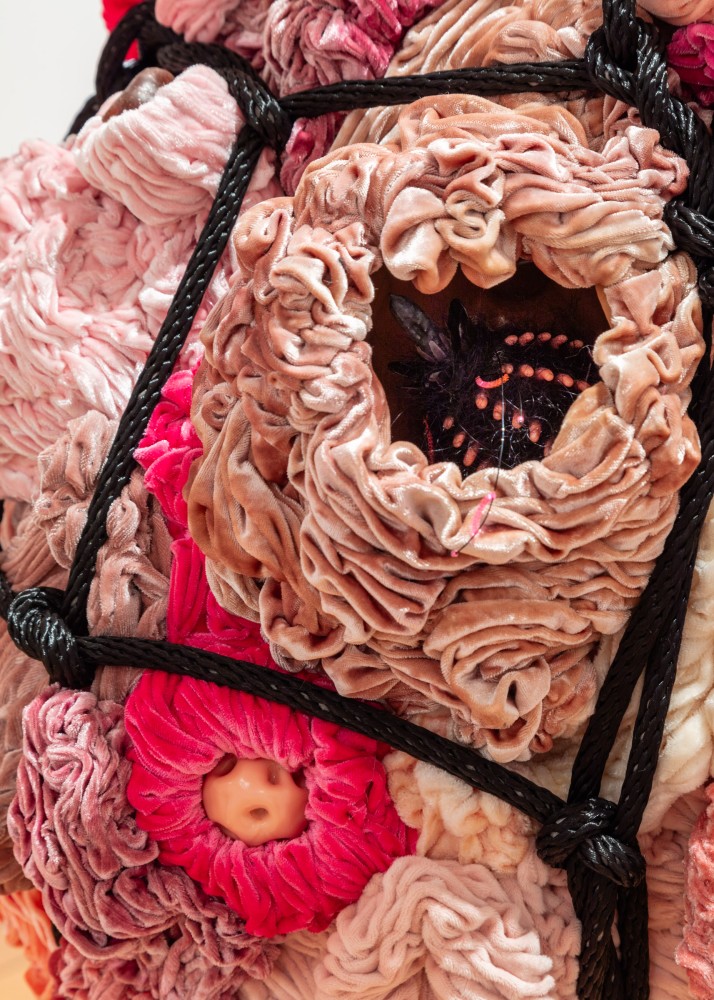 smocked velvet, rope, squeaky toy, inverted Fleshlight, plastic forks, LOL/OMG doll heads, toy truck tires, makeup brushes, eucalyptus seedpods, Cabbage Patch Kids heads, Lalaloopsy heads, plastic clothing tags, dryer balls, tires from semi trucks