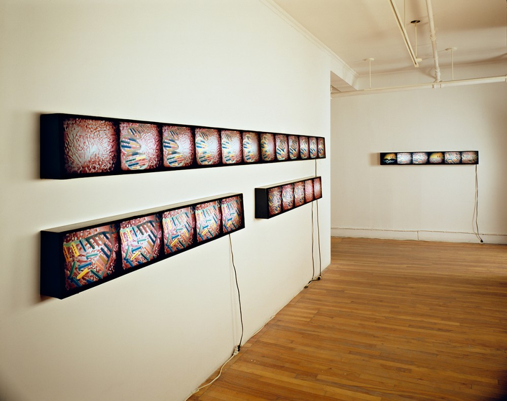 four fluorescent lightboxes, duratrans, plexiglass